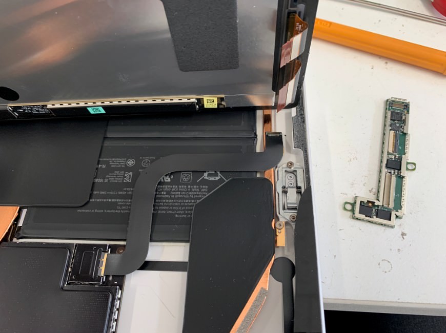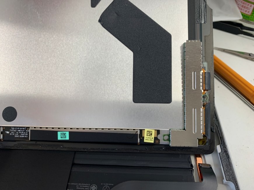 Surface Pro5の画面パーツはケーブル2本で本体に接続されています。