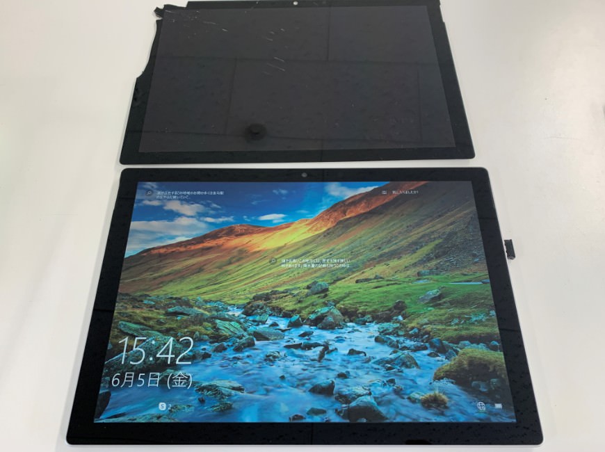Surface Pro5の表面ガラスが割れてしまった、ということで画面交換修理ご依頼を頂きました!