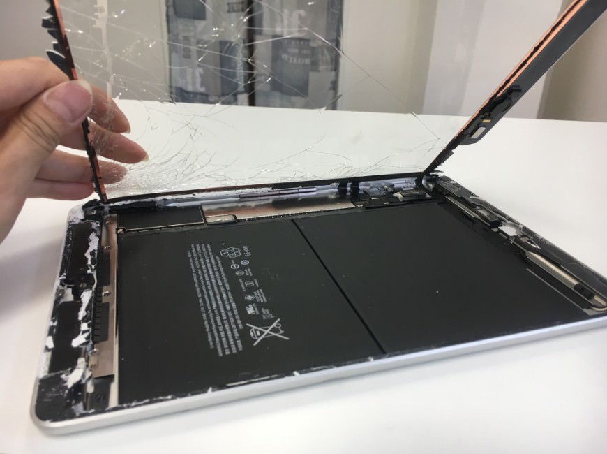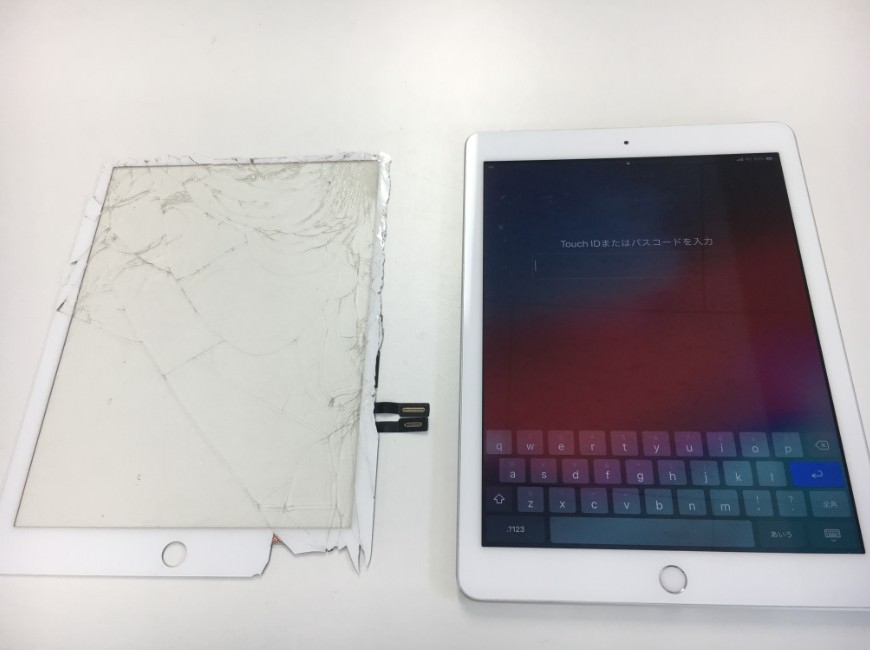 iPad 第6世代のガラスが割れて画面に穴が開いた!所要時間90分で新品同様に直りました!【町田のiPad即日修理店】