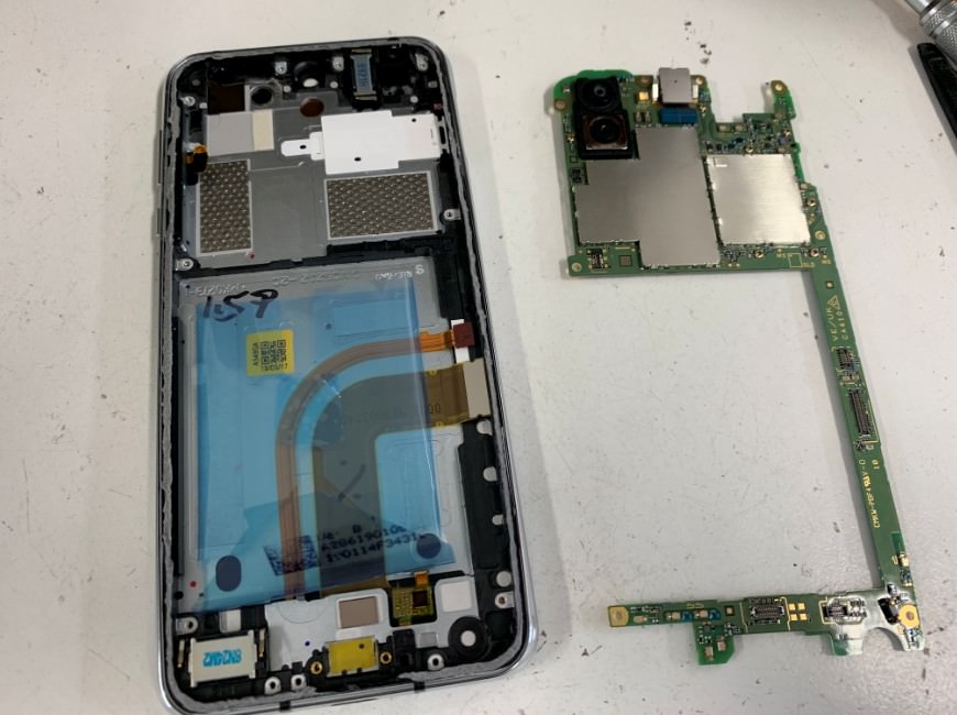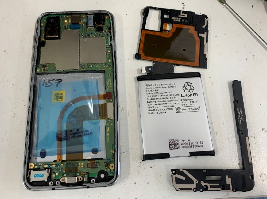 AQUOS R2の画面交換はフレームごと交換するので、このまま基板も取り出します。