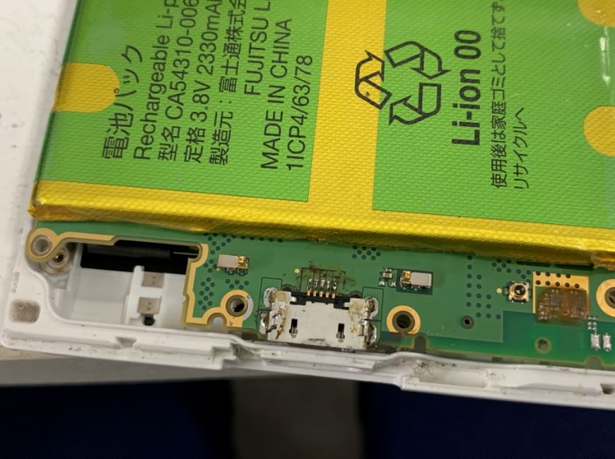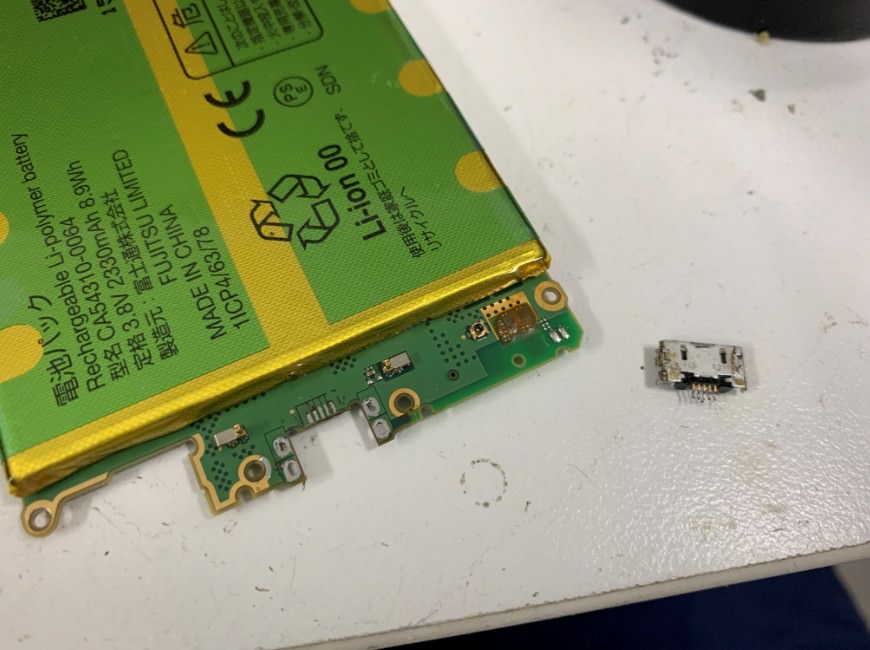 出来ればこのまま使用し続けたいとのことでしたが、Arrows M02の充電口はそう簡単に交換出来る箇所ではございません。