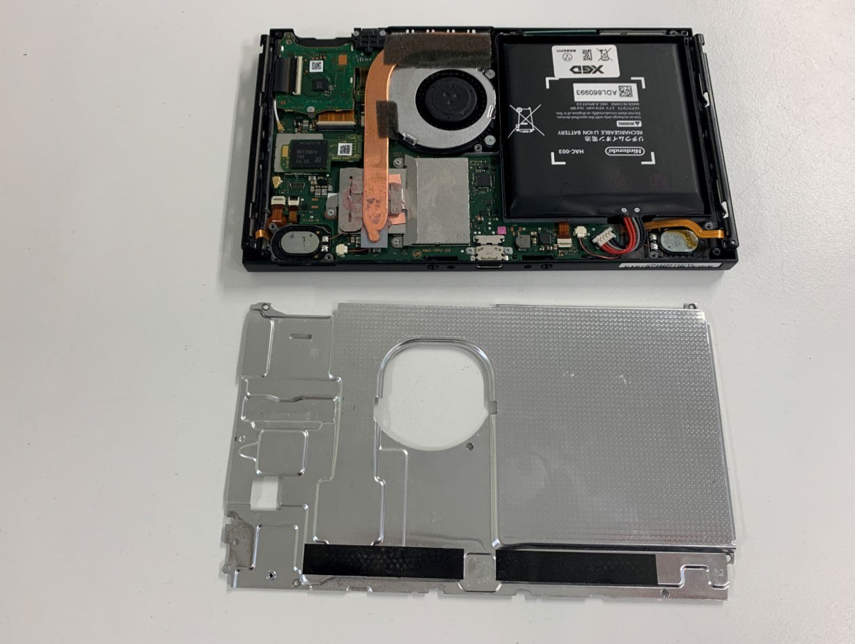 黒い背面パネルの下には銀のプレートがあり基板を覆っています。