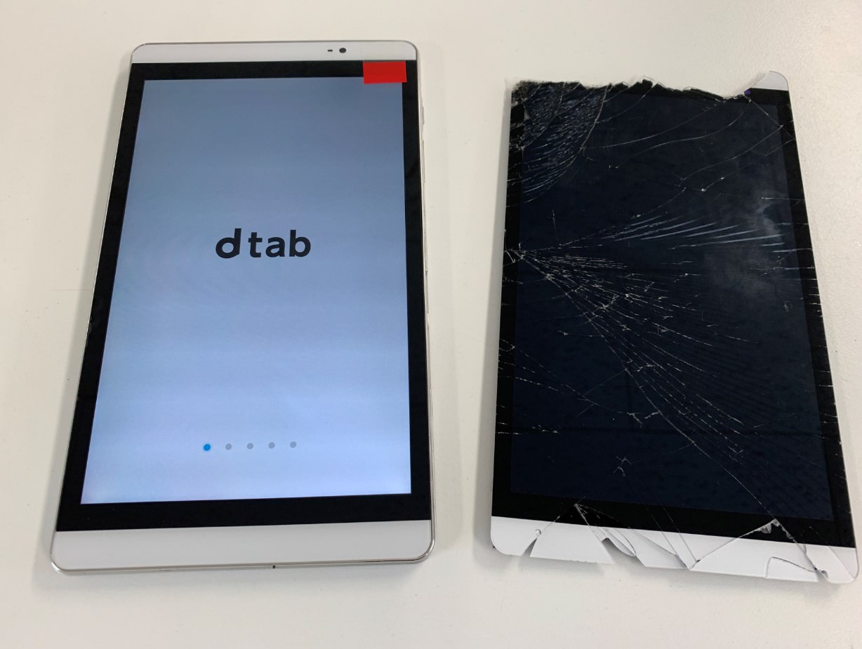 dtab(d-02h)の画面交換が安い!画面割れ+液晶破損で何も表示されない状態もデータ消さずに修理出来ます!【町田のタブレット修理店】