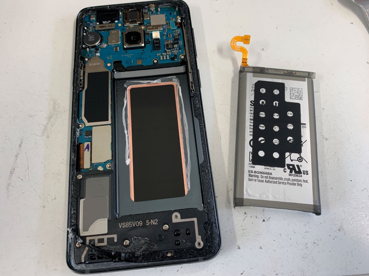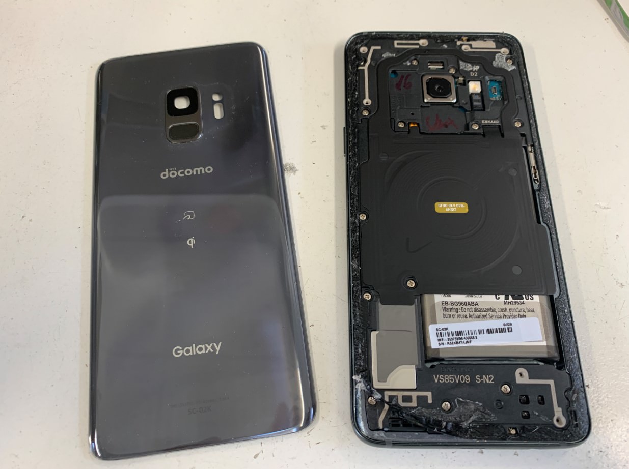 スマートフォンの電池パックの寿命は1年半から2年程度といわれているので、最近ではGalaxyS9の電池パック交換修理ご依頼を多く頂くようになりました。