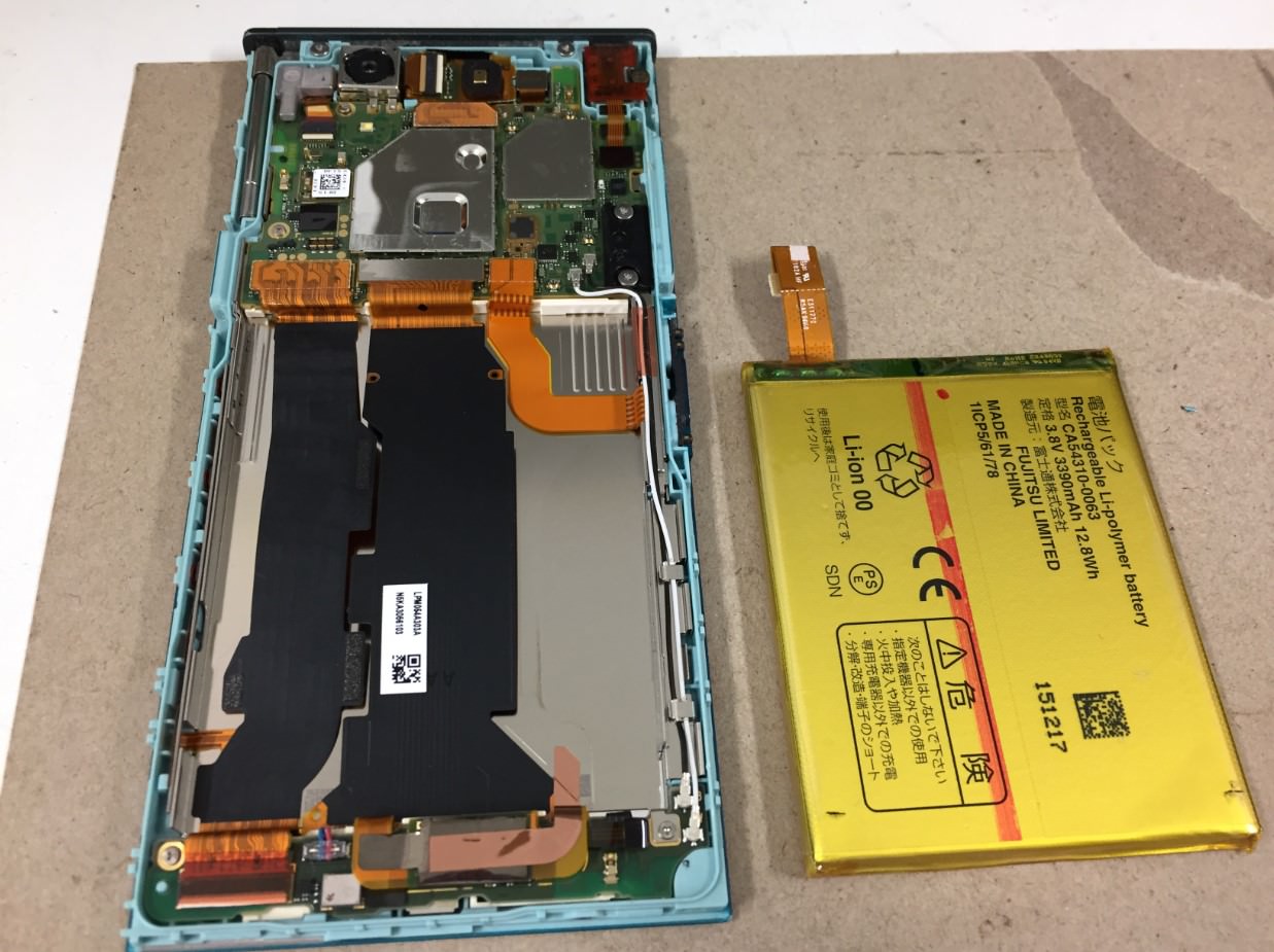 背面パネルを剥がしたらバッテリーのコネクタを抜き、バッテリーを取り出す作業にとりかかります。