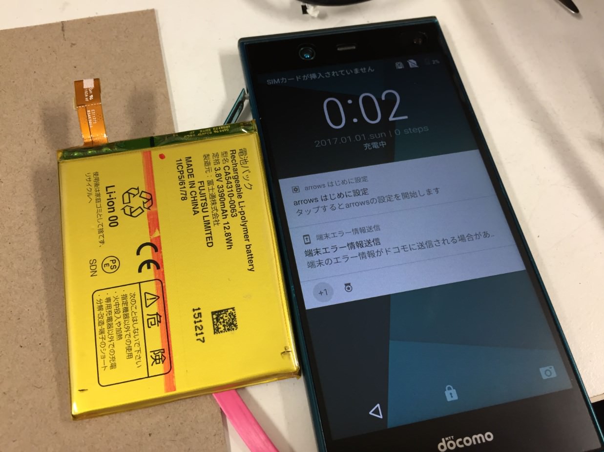 F-02H(Arrows NX)バッテリー交換が安い!電源が入らない症状がデータ消さずに改善!