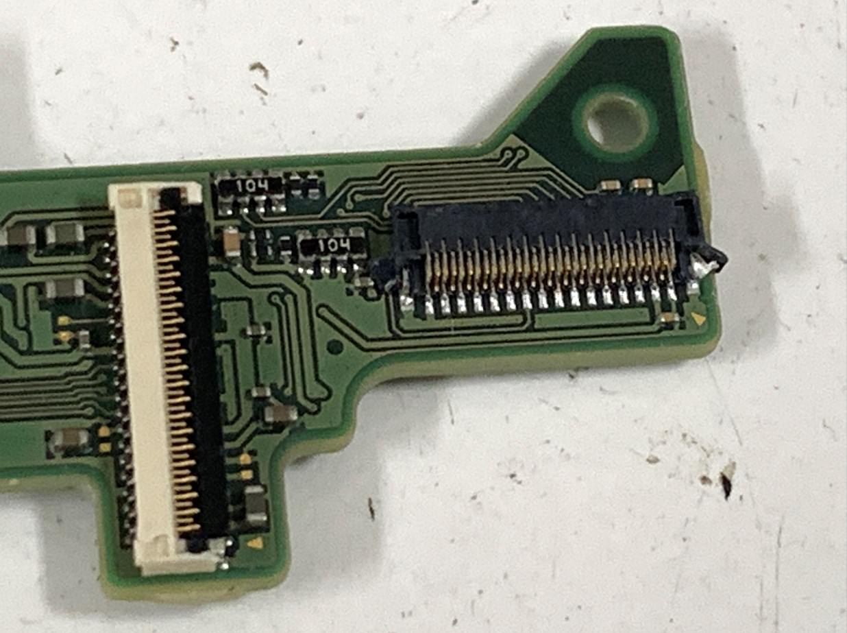 ここのラッチが取れてしまったとこによってケーブルを固定できなくなり、電源が入らない状態になってしまったようです。