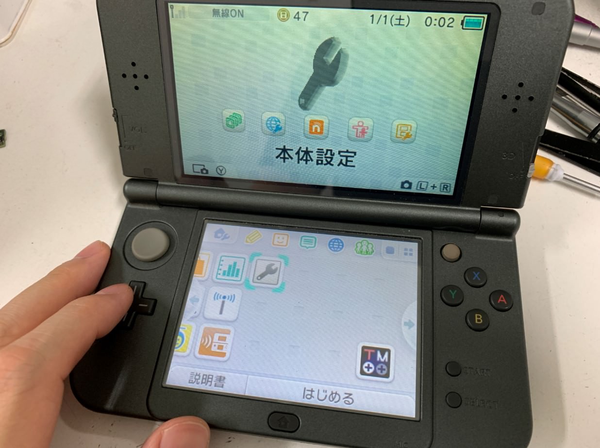 New3DSLLをお客様がご自分で修理を試した結果、電源ランプは光るものの電源が入らなくなってしまったとのことで修理ご依頼を頂きました!