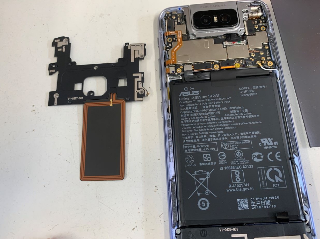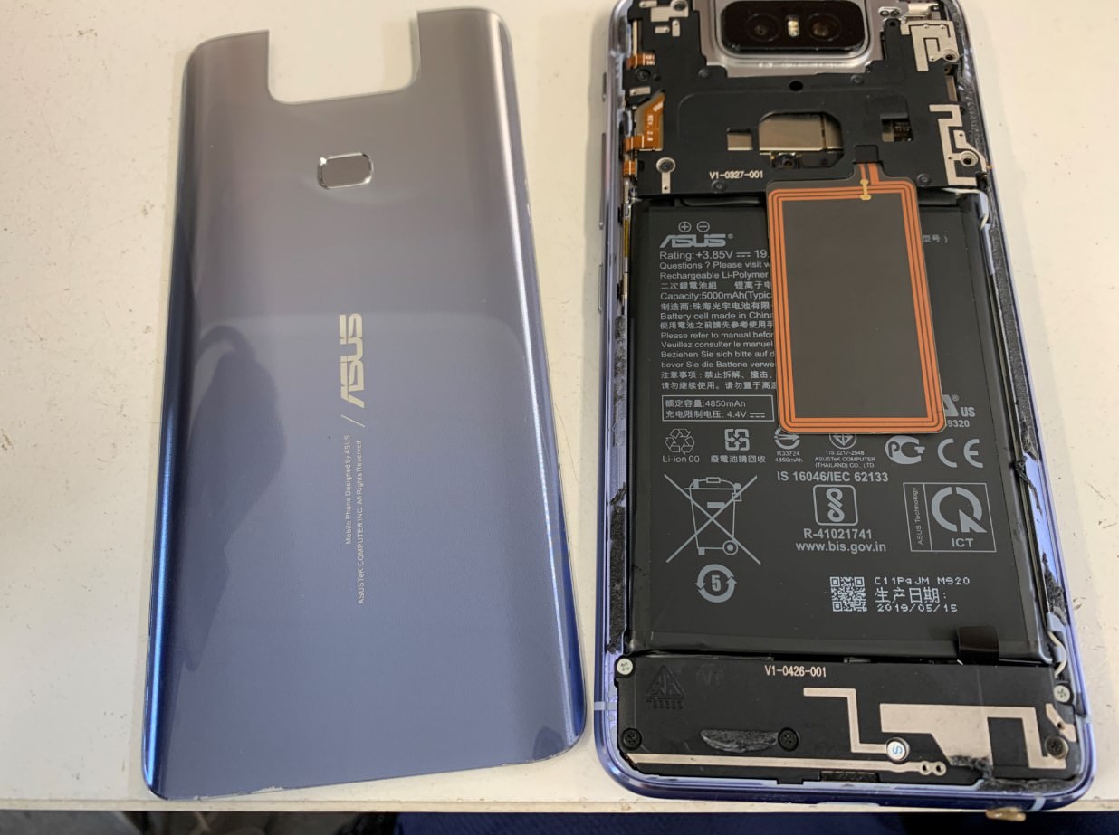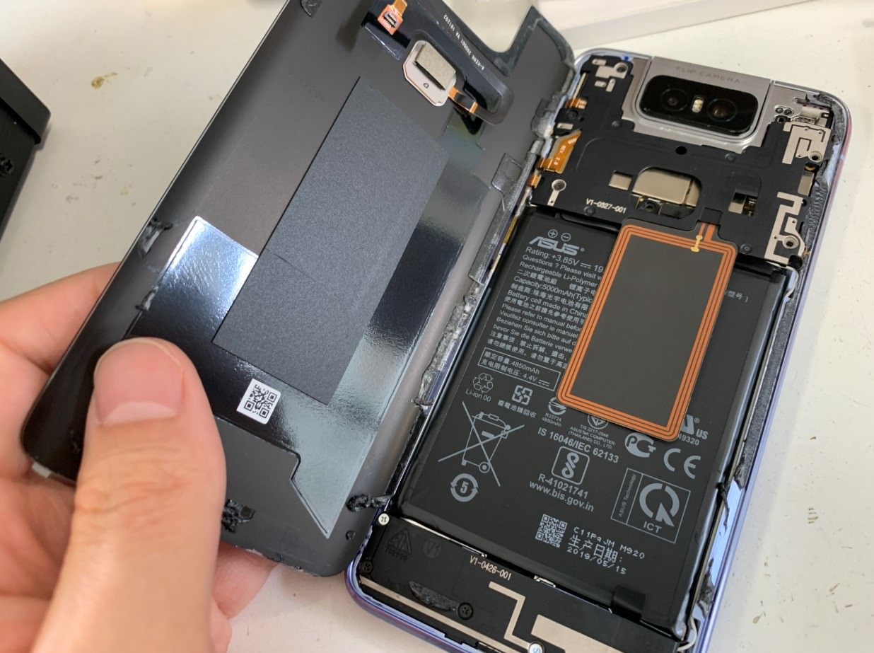Zenfone6(ZS630KL)はこのように背面ガラスを開いて分解します。