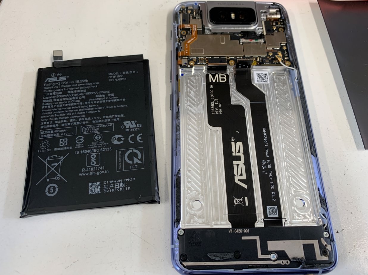 Zenfone6(ZS630KL)の場合、背面ガラスを剥がす作業に一番気を使います。