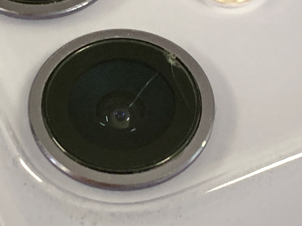 上のカメラレンズのように大きな穴が空いてはいませんが、ひび割れが1本入ってしまっています。
