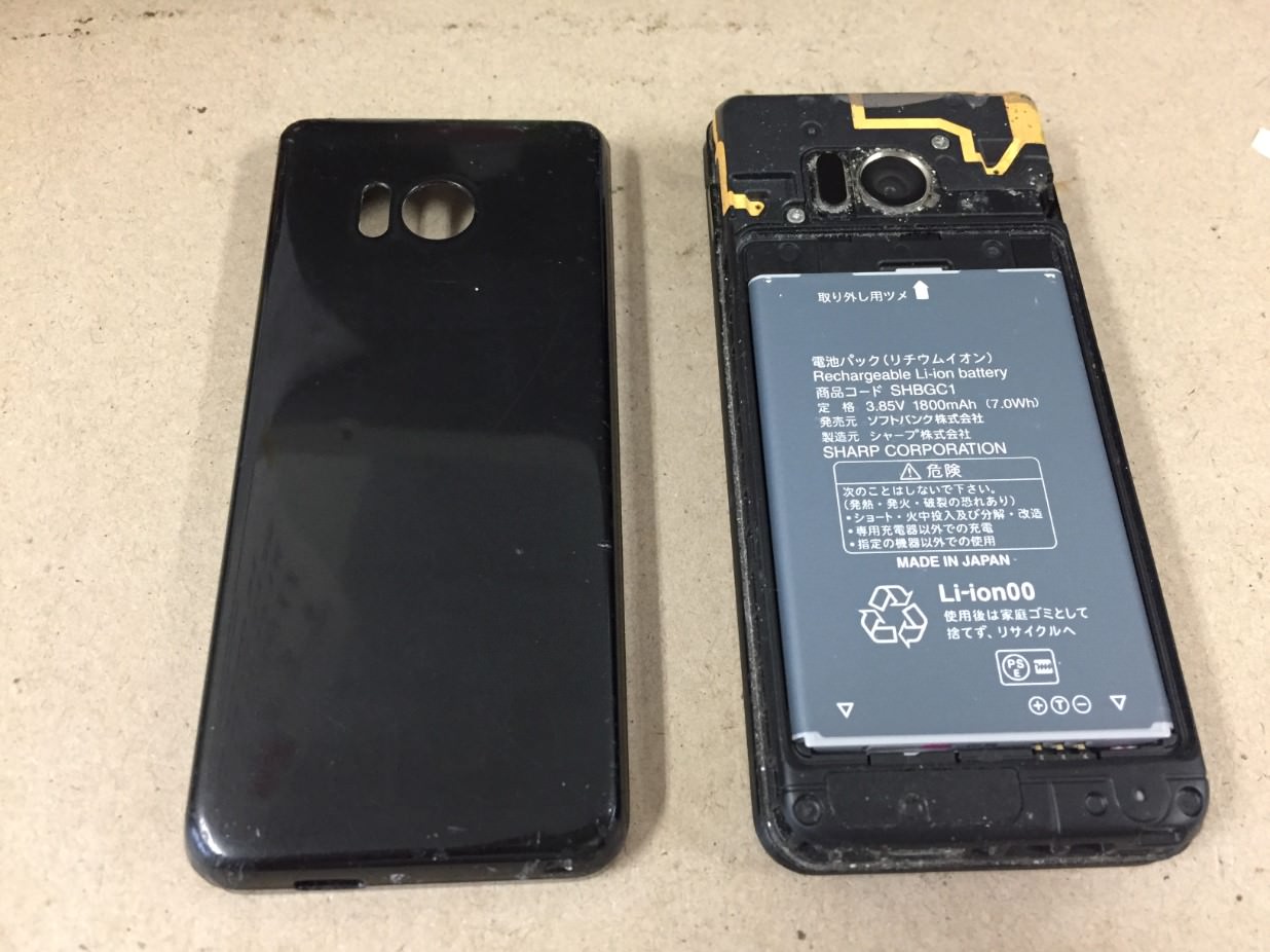 今回お持ち頂いたAQUOSケータイ2(601SH)は背面ではなく表面から分解します。