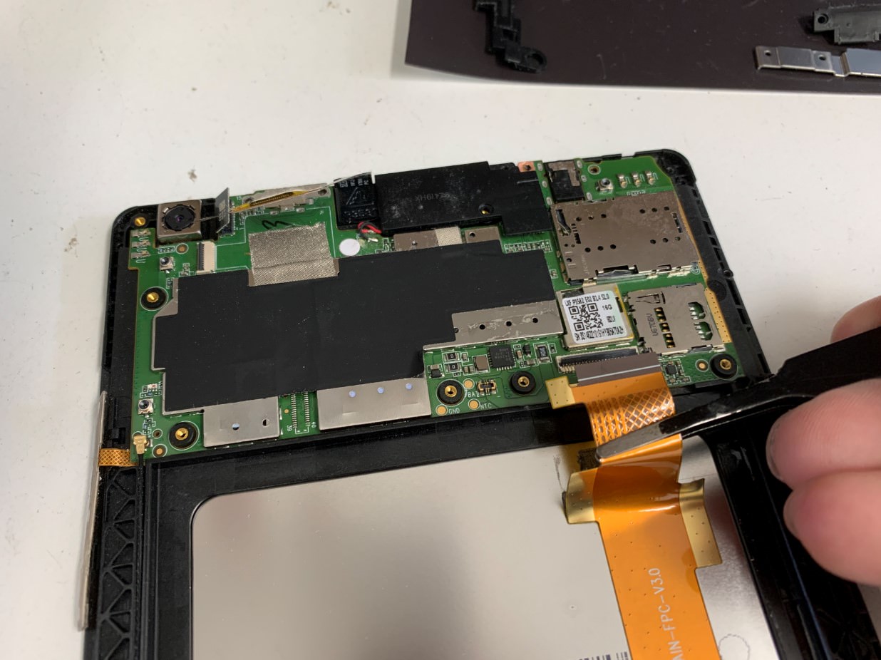 バッテリーの下には液晶画面のコネクタが這っているのですが、バッテリーを取り出すことで液晶画面のコネクタを基板から取り外しやすくなります。