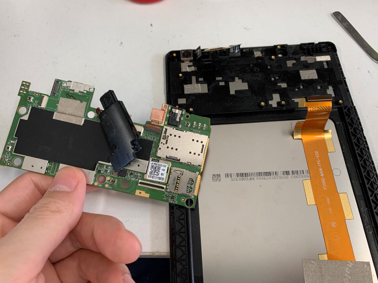 Lenovo TAB3の充電口パーツは基板に直接はんだ付けされています。