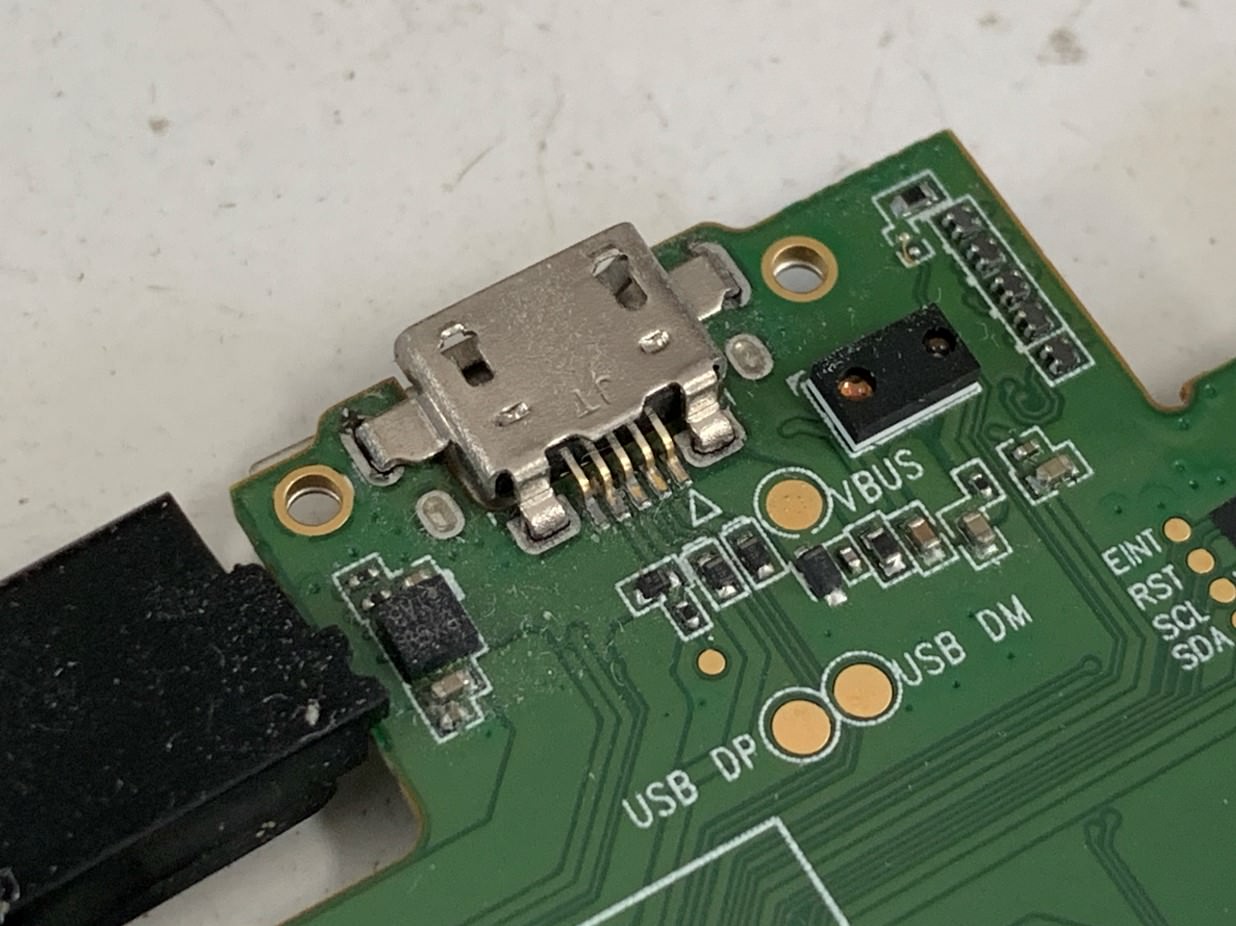 ただ確認してみると、金色の5点は若干浮いてしまっていて、固定されているはずの4点もスカスカで充電口自体が取れそうになっていました。