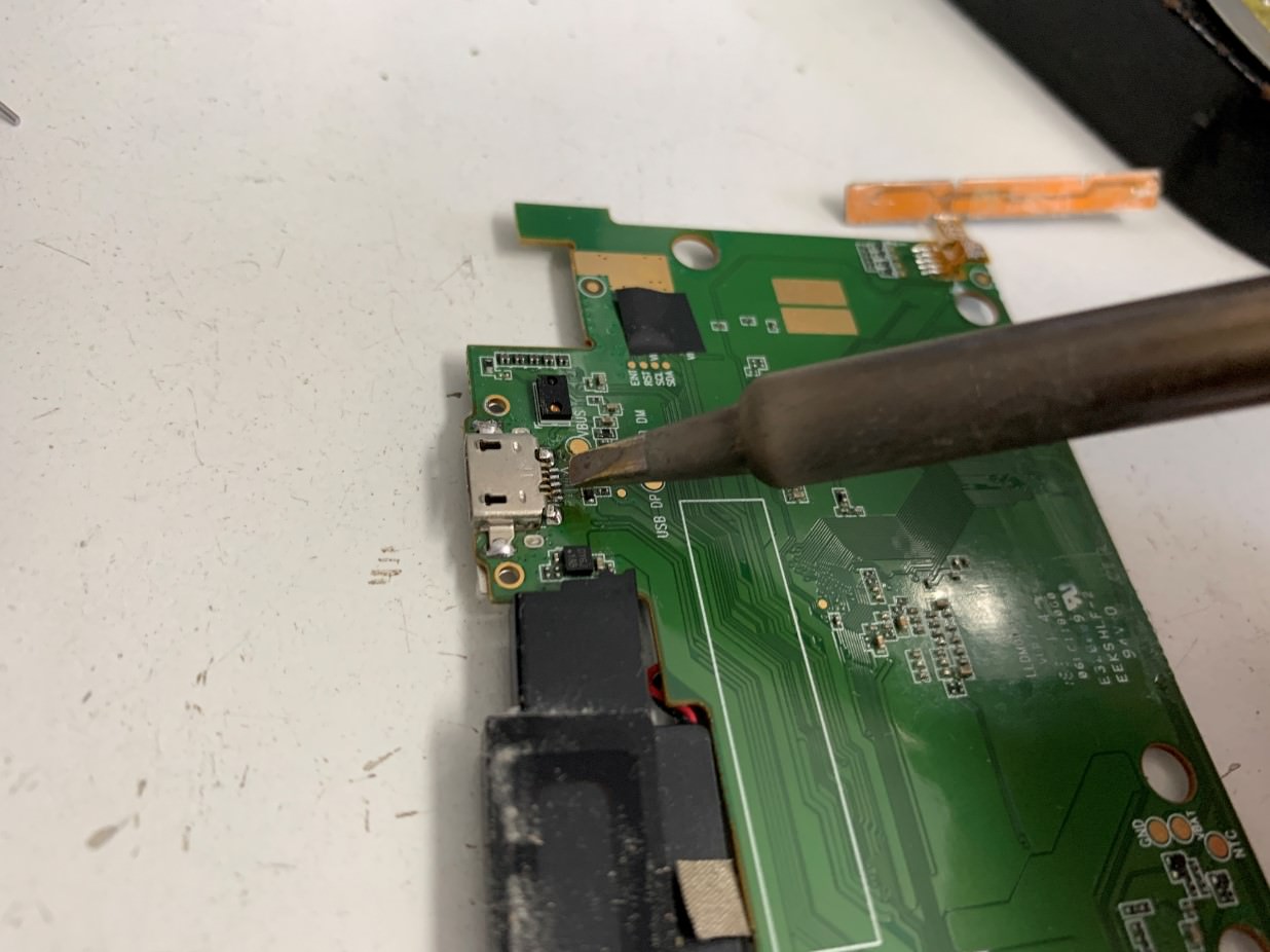 はんだ小手を使って充電口にはんだを足します。