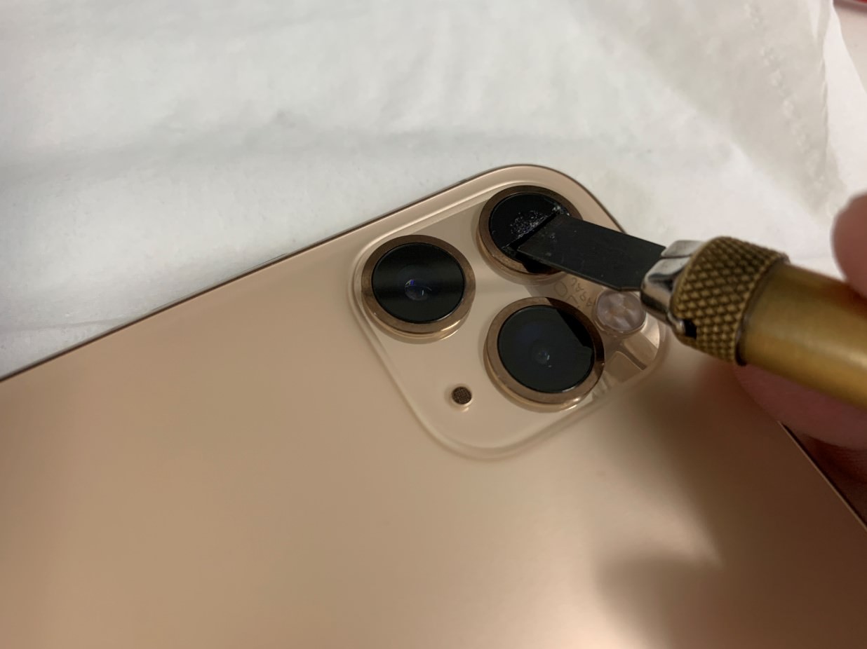 店舗によって修理方法はことなりますが、スマホスピタル町田では外側からカメラレンズを剥がします。