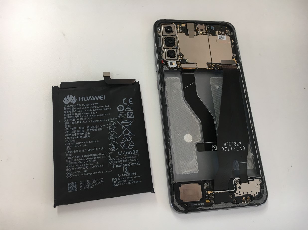 【P20 Pro(HW-01K)バッテリー交換が安い】電池パック膨張して背面パネルが浮いたハマグリ化も即日改善!