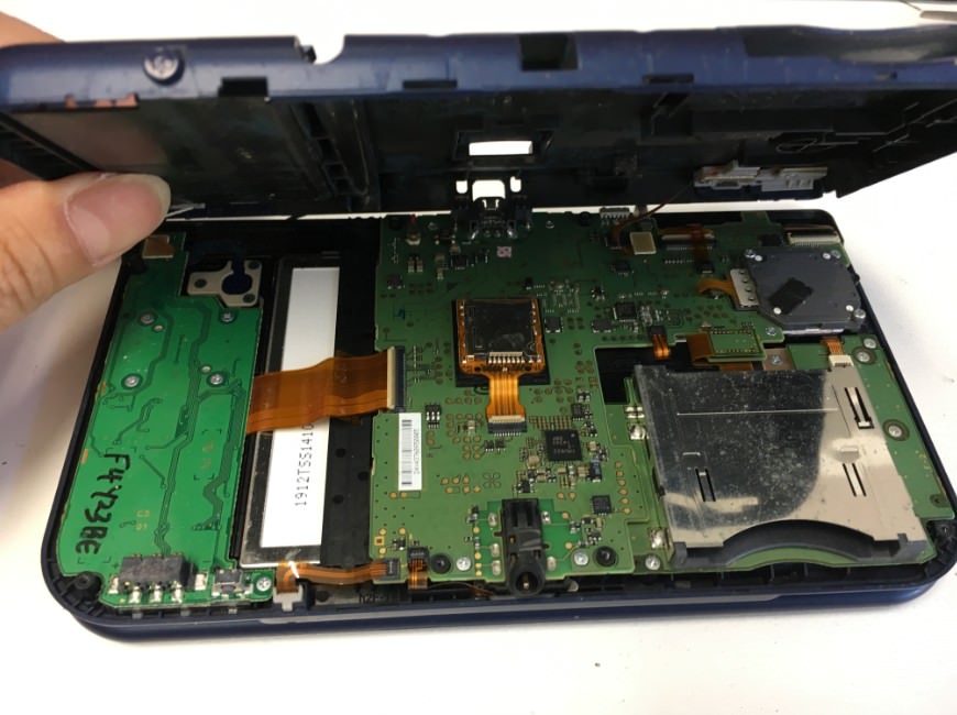 今回お持ち頂いたNew3DSLLは落としてしまってから上画面に何も映らなくなってしまった、ということでした。