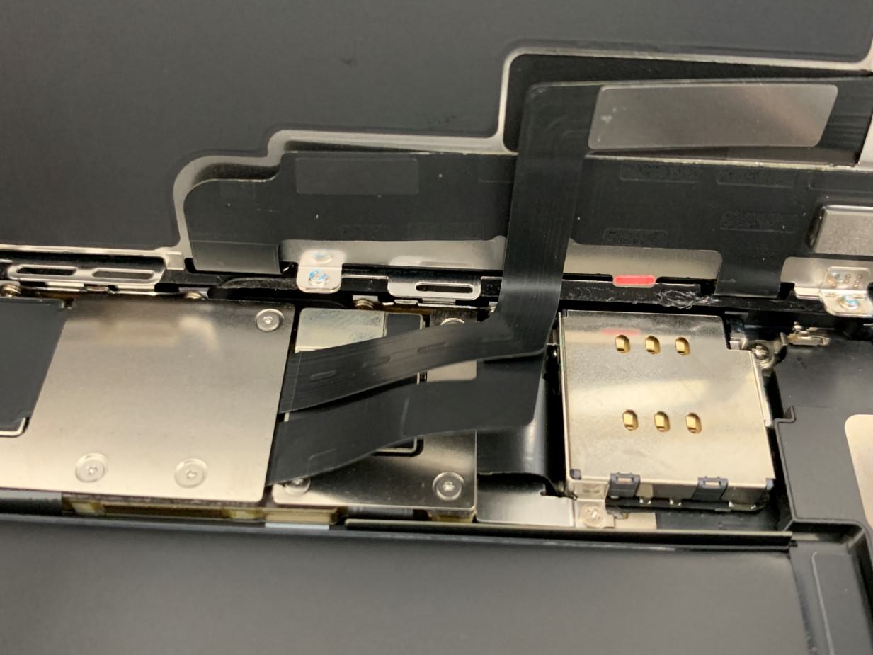 SIMカードトレイの上にある水没確認シールが白から赤に変わっています。