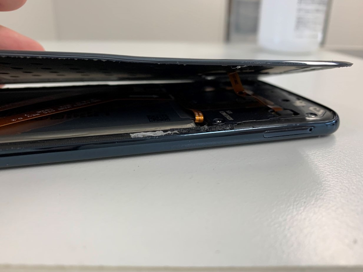 背面パネルの粘着を剥がし終わって指紋認証ケーブルを本体から外すと…