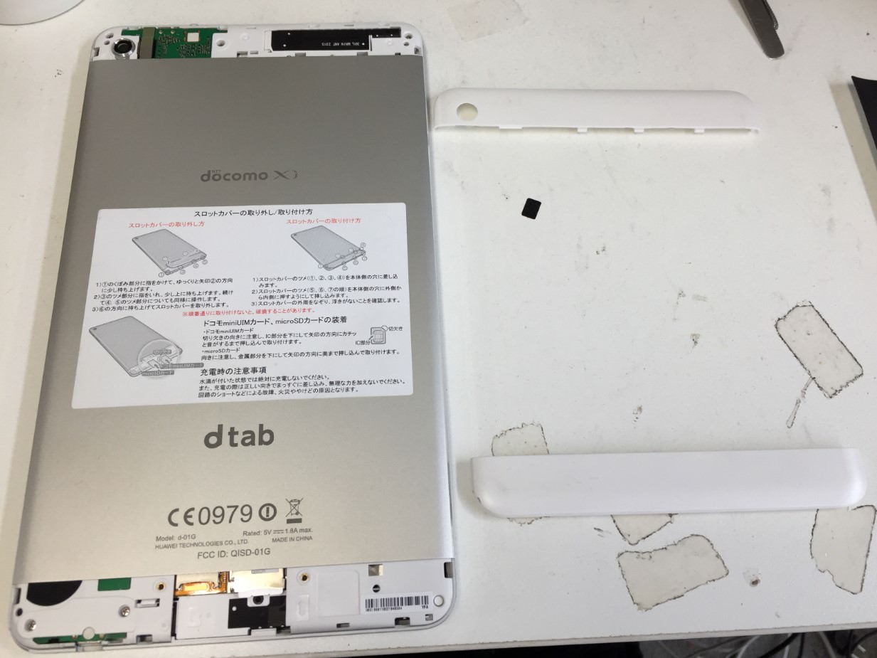 d-01G(ドコモタブレット)を分解するにはまずは背面のプラスチックパーツを剥がします。