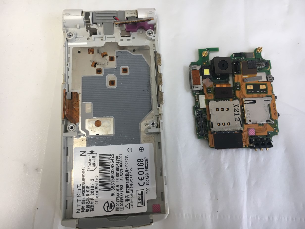折り畳み携帯電話のN-01Bの本体がボロボロになり過ぎた為か、画面に何も映らなくなってしまったということで修理依頼を頂きました。