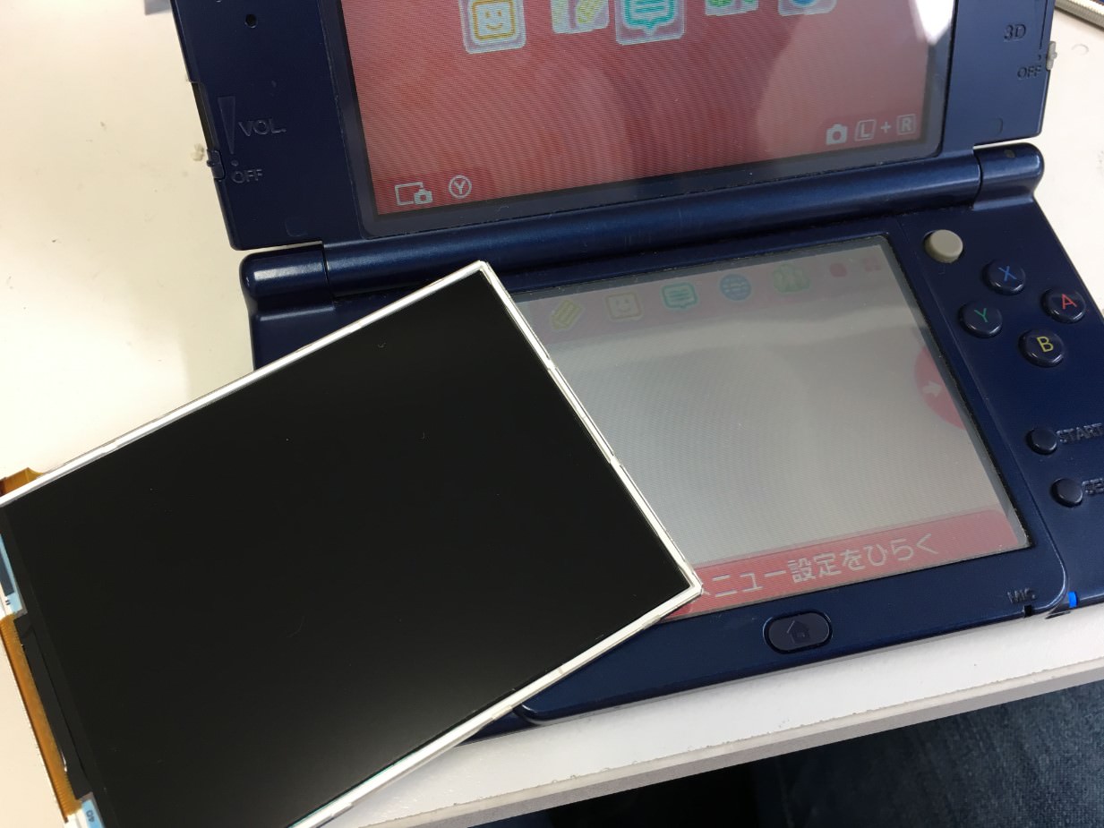 New3DSLLの画面の一部が液漏れして黒く変色してしまっているということで修理のご相談を頂きました!
