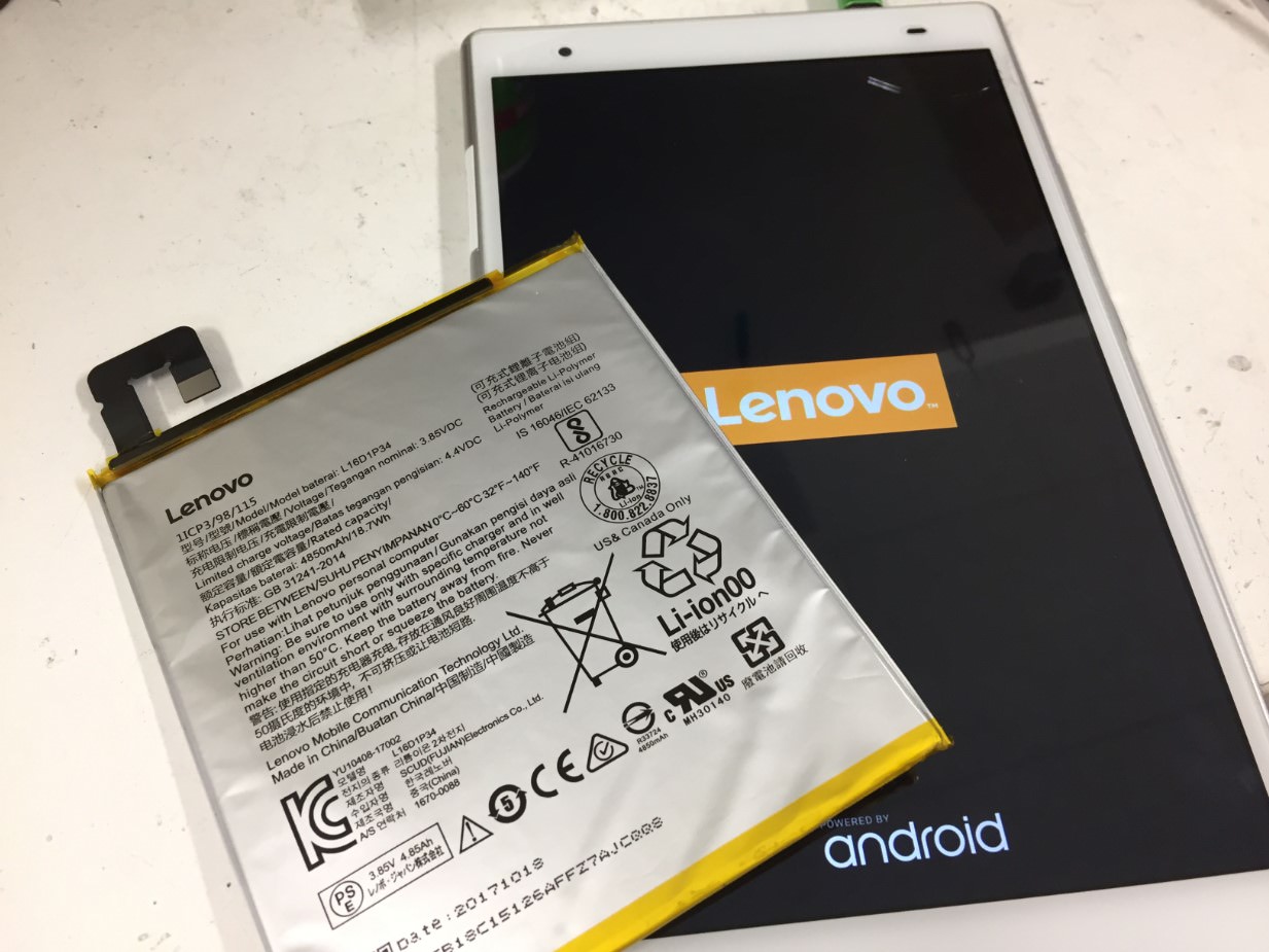 Lenovo TAB4 8の電池持ちが悪い!バッテリー新品交換ですぐ充電無くなる症状が改善![町田のアンドロイドタブレット修理店]