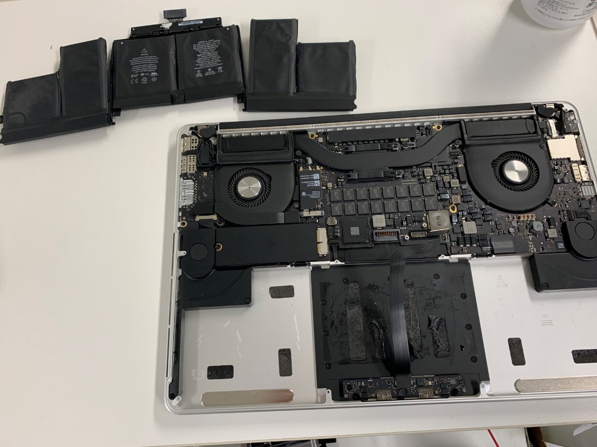 MacBook Pro(2015年15インチモデル)のバッテリーが劣化しきってしまったのか、充電器を接続している間は問題ないものの、抜くとほんの数分で電源が落ちるとご相談を頂きました!