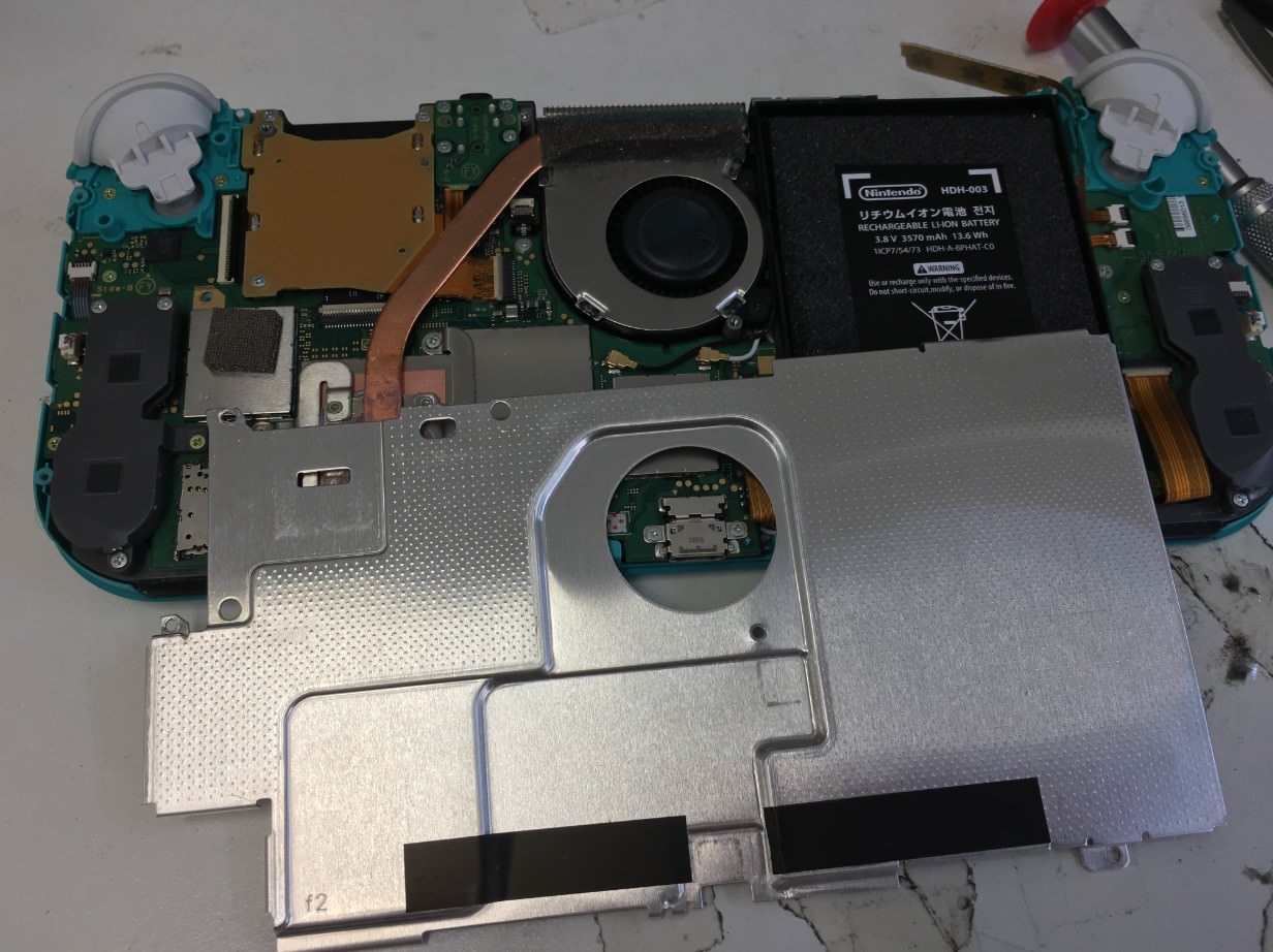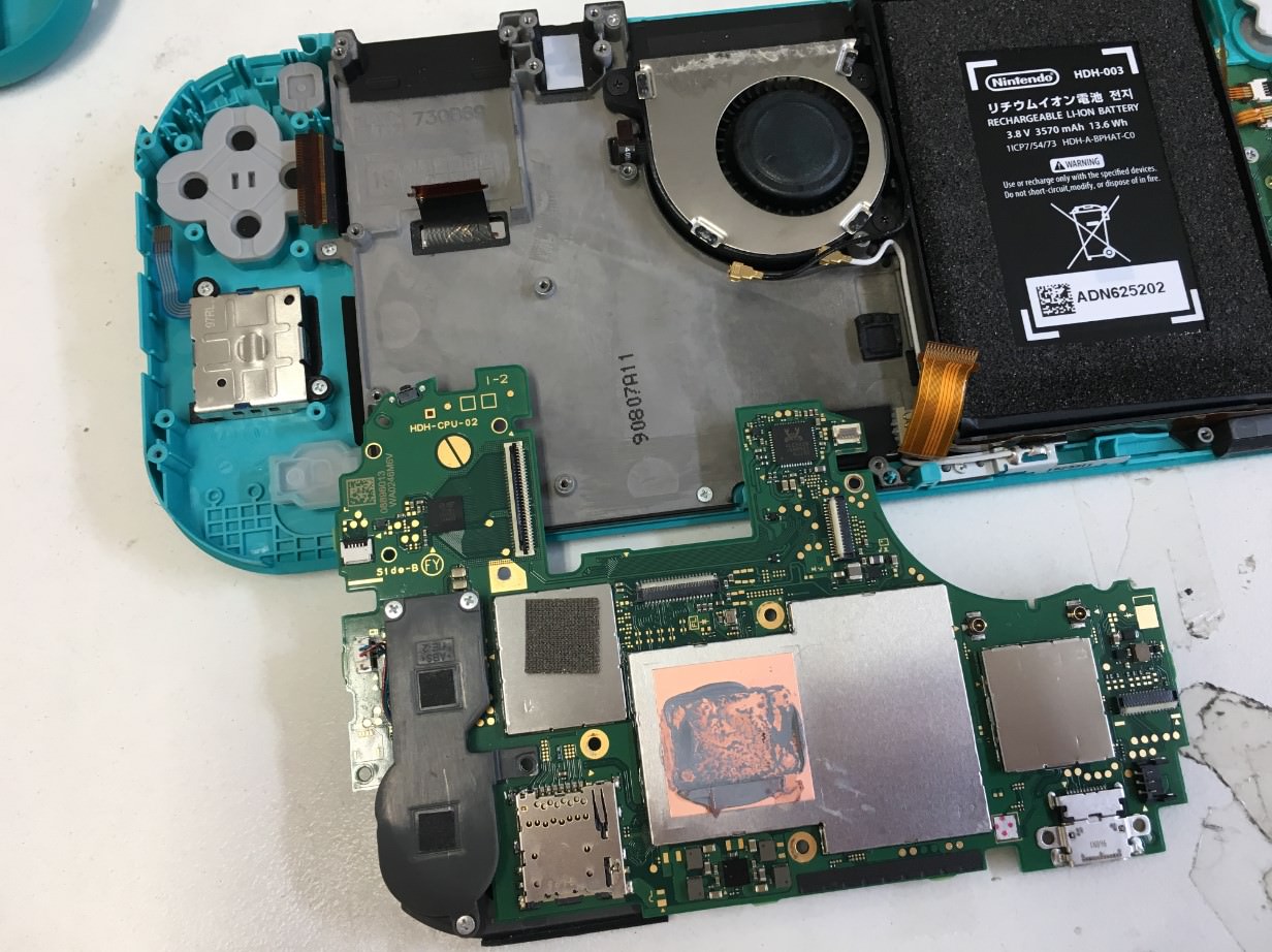 Nintendo Switch Liteの液晶交換は非常に複雑な作業で、基板を取り出さないといけません。