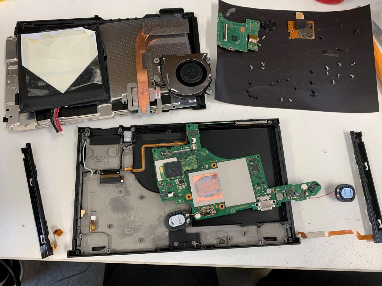 Switchの外装を交換するには基板やバッテリーや液晶画面など全て剥がさないといけないのでかなり大変な作業です。