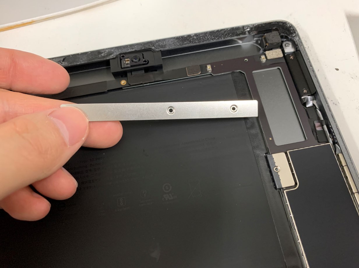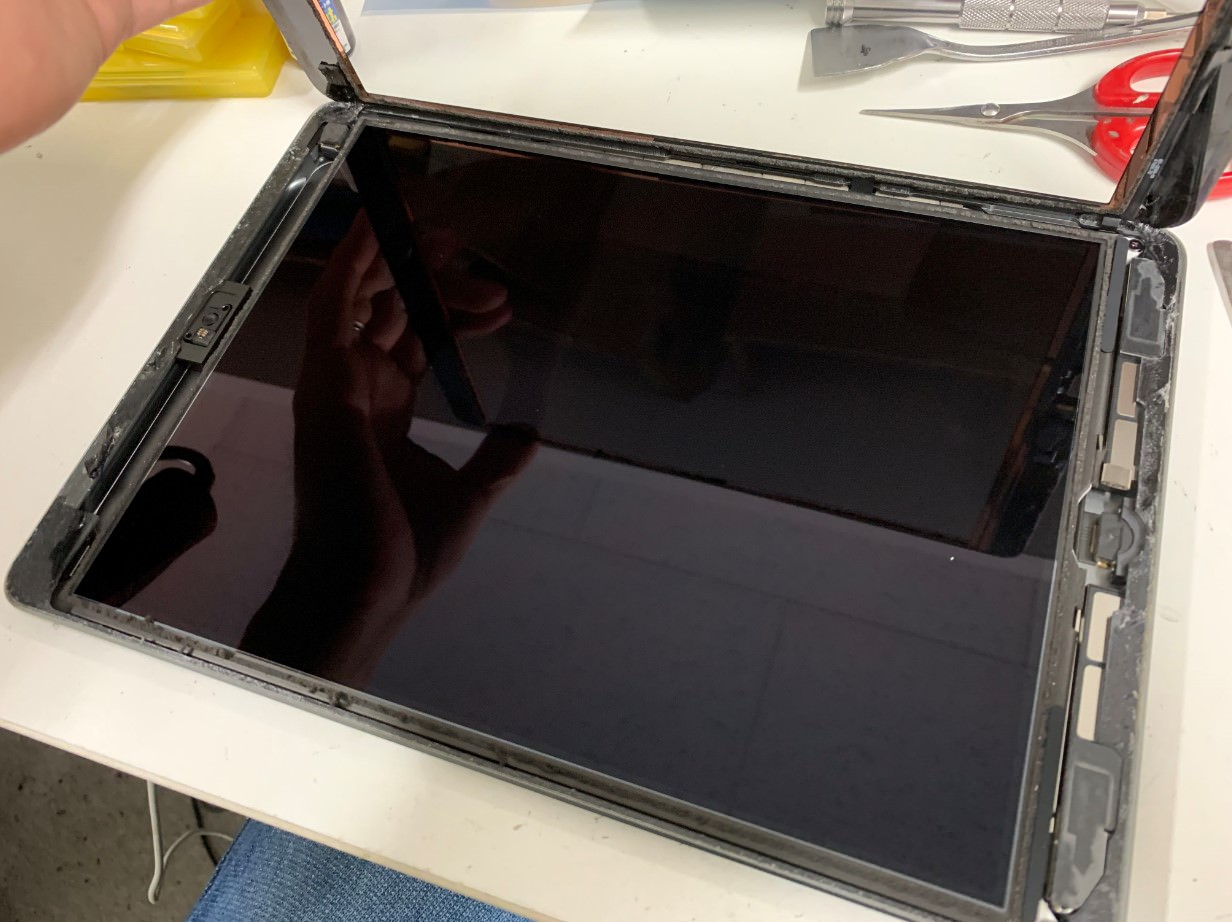 従来と機種と同じく、iPad第7世代も液晶画面は銀板で固定されています。