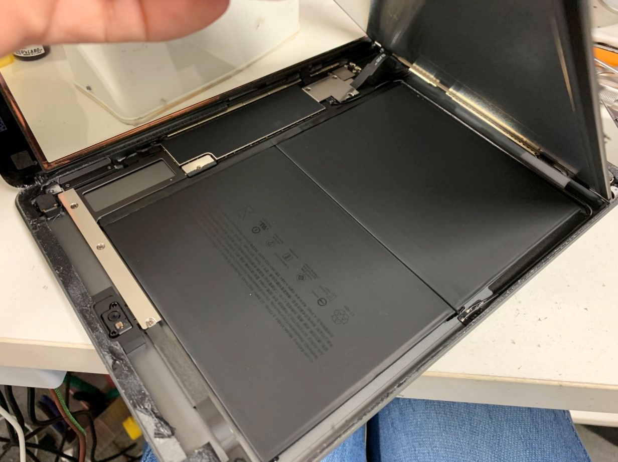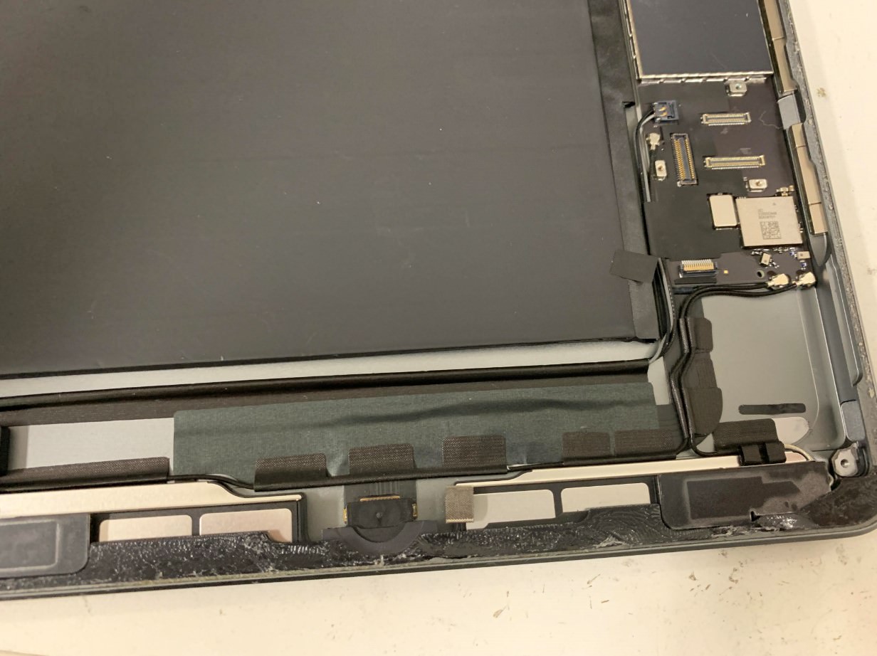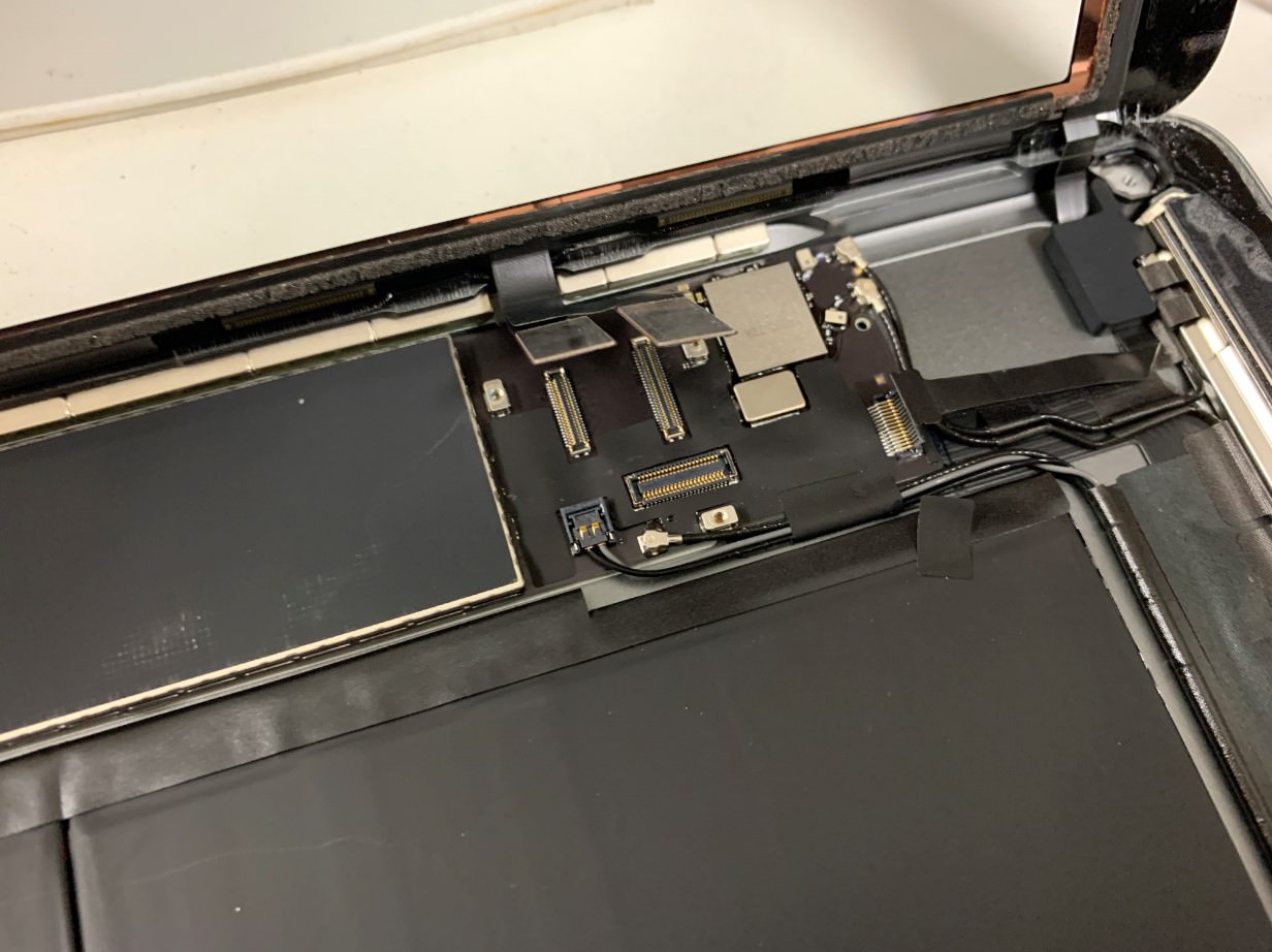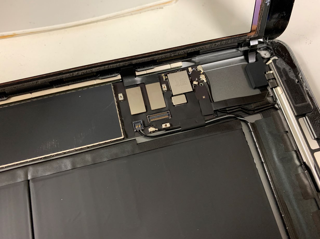液晶画面を持ち上げると本体内部はこのようにほぼiPadAirや第5世代、第6世代と同じ構造をしていることが分かります。