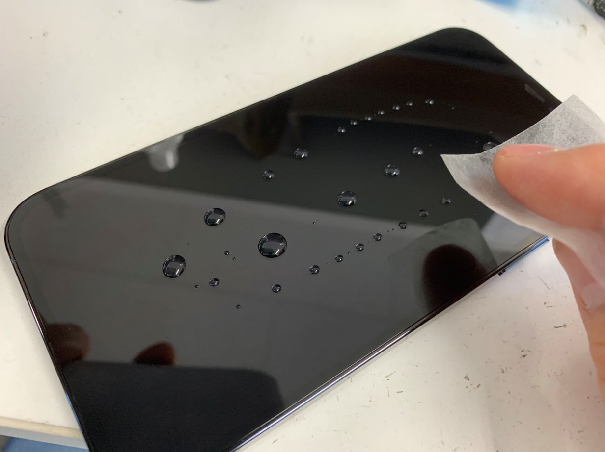 完全にクリーニングできたらコーティング剤を画面上に垂らします。