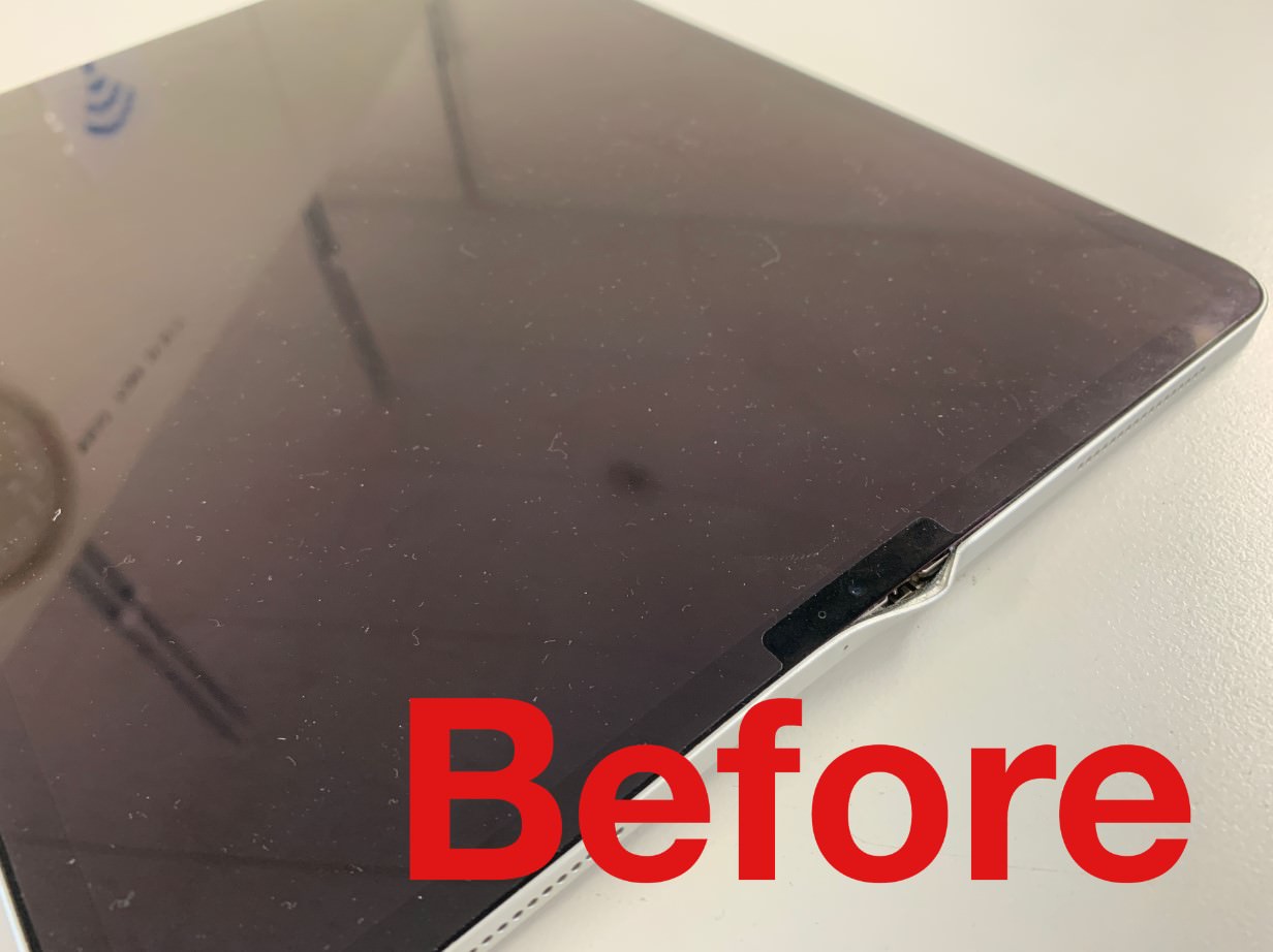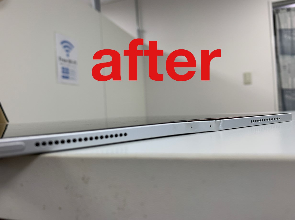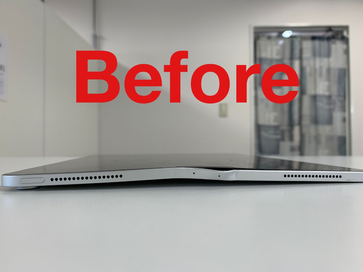 [iPad本体が湾曲]中が見えるほどの変形を所要時間60分でほぼ真っすぐに矯正修理!