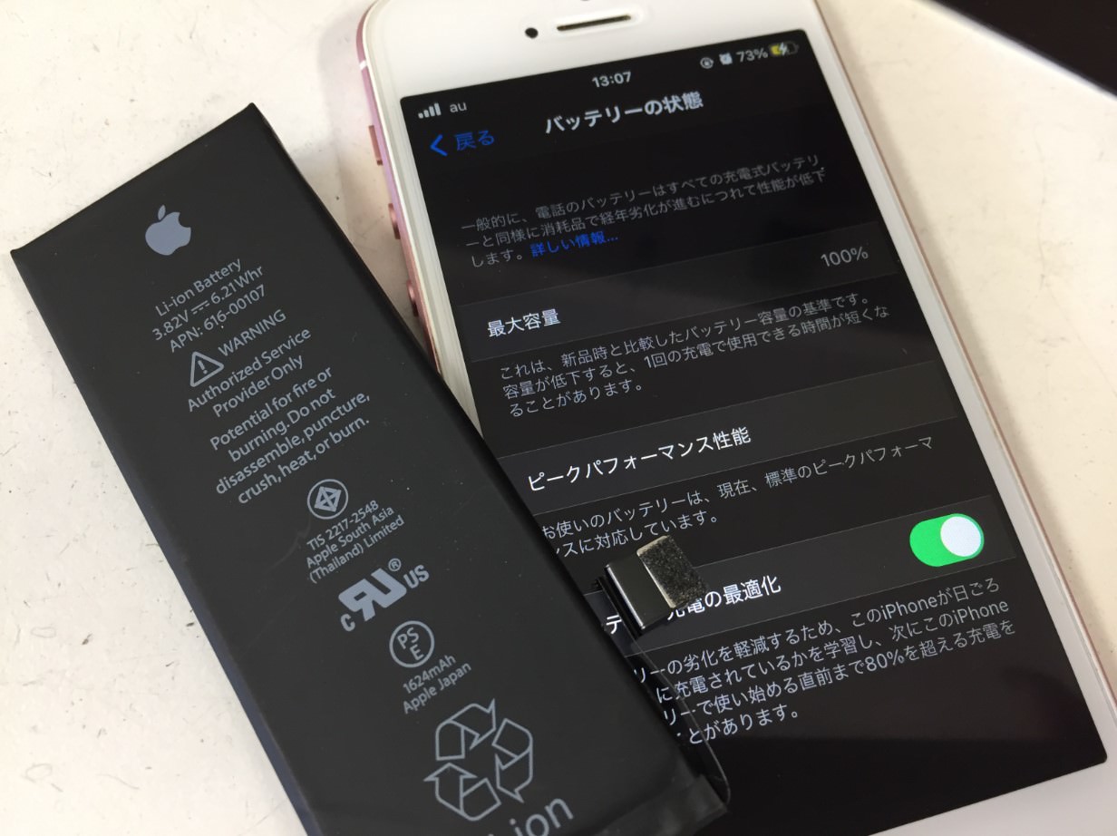 当店で扱うiPhoneSEのバッテリー容量は1624mAhです。