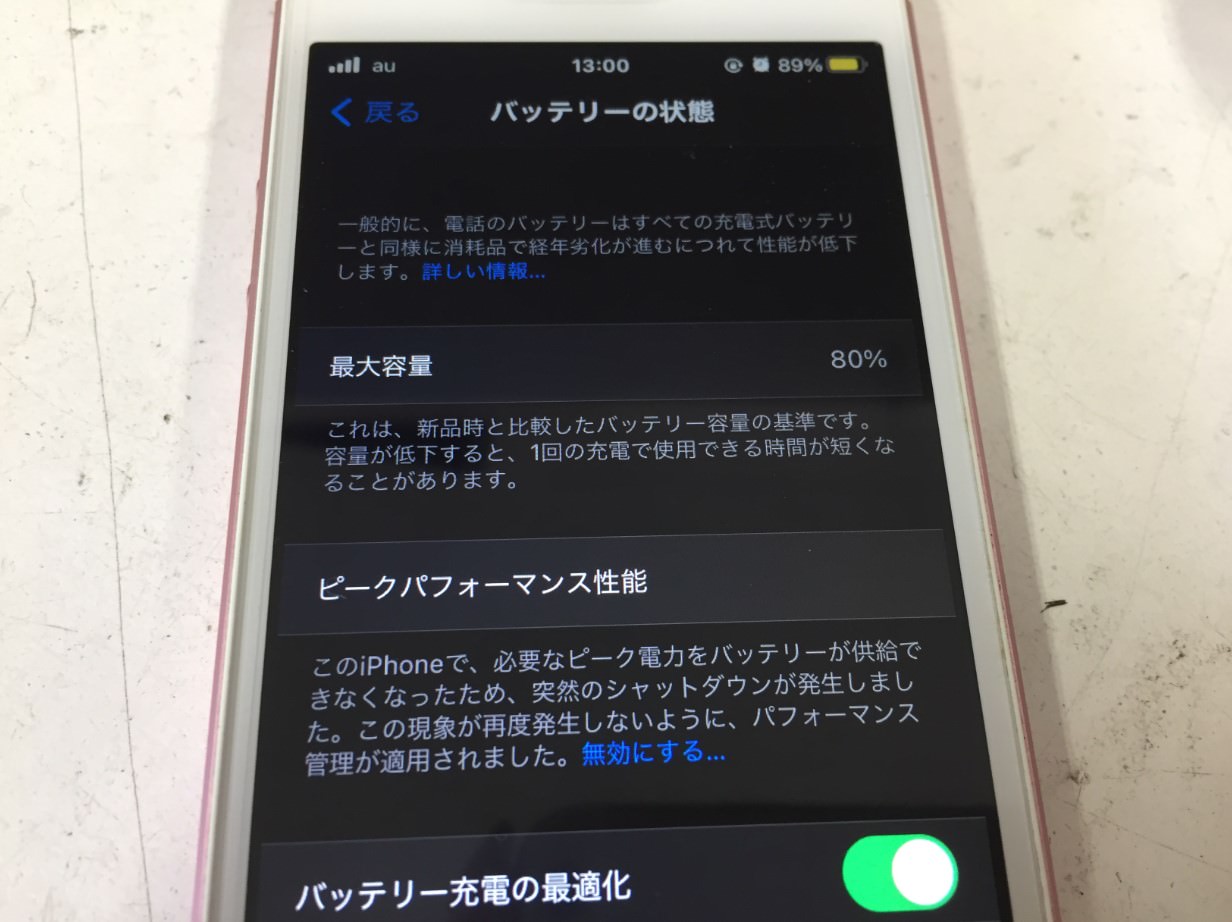 バッテリー最大容量は80%まで劣化していました。