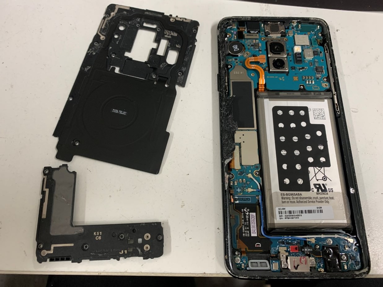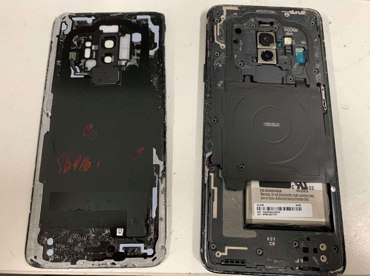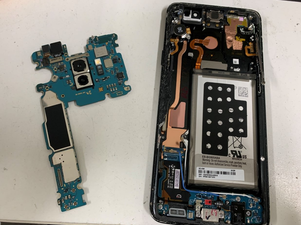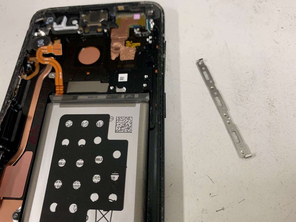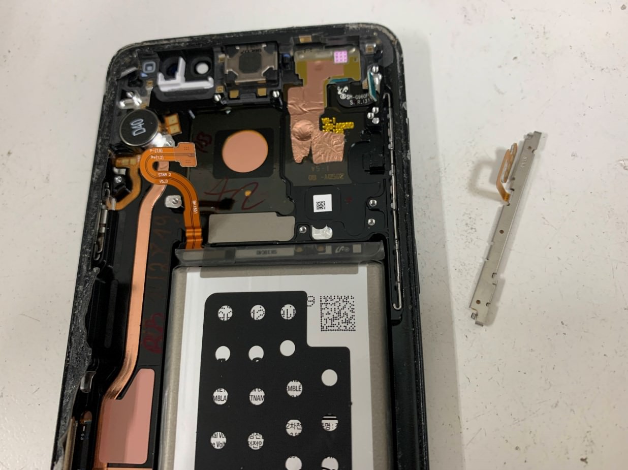 今回お持ち頂いたGalaxy S9+ですが、音量下げるボタンが陥没していました。