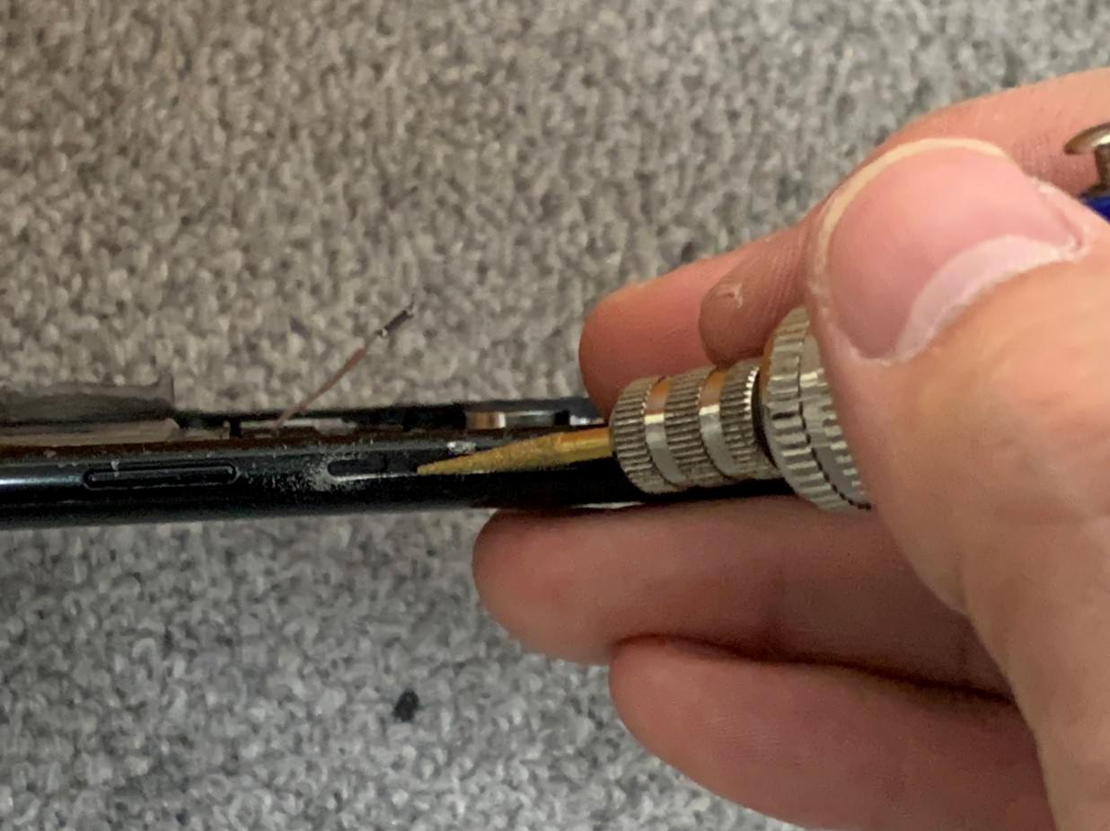後は研磨ドリルで音量ボタンや音量ボタン周りのフレームを矯正します。