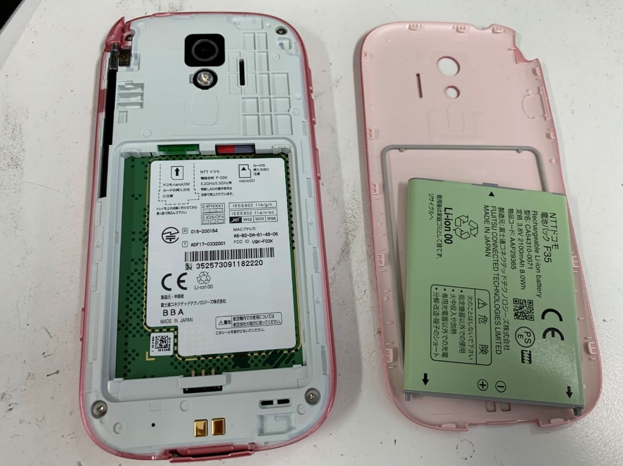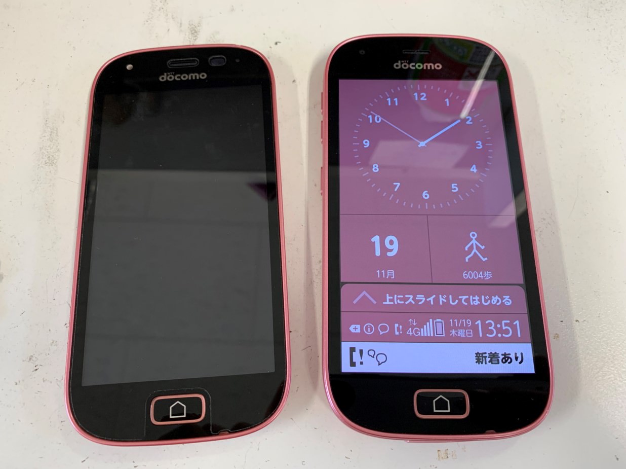お持ち頂いたのは2018年2月に発売された「らくらくスマートフォン me(F-03K)」です。