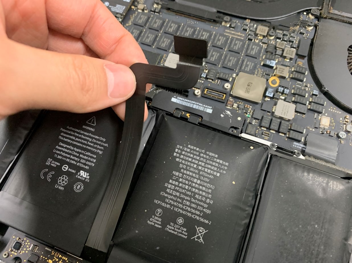 MacBook Proのバッテリーはかなり強力に本体に接着されています。