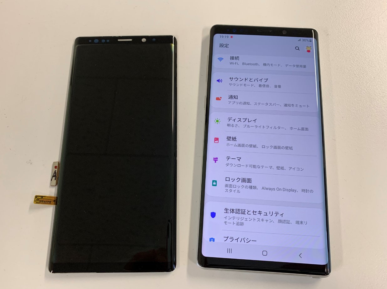 これでGalaxy Note9の画面パーツ交換修理です!