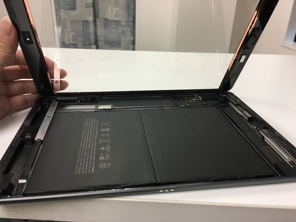 iPad 第7世代の表面ガラスは無傷なのですが、内部の液晶が損傷してしまって液漏れしているとご相談を頂きました。