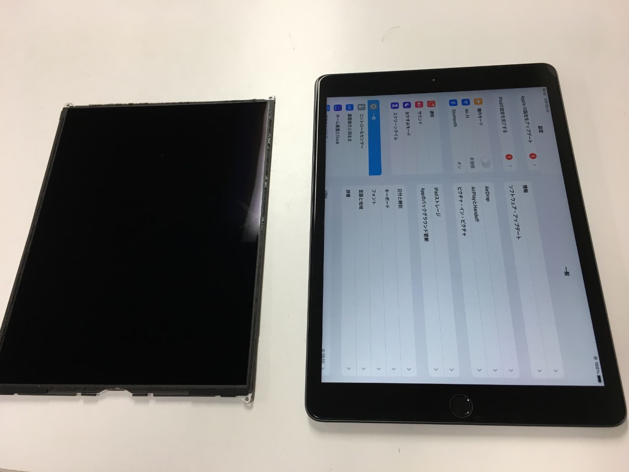 iPad 第7世代のLCD(液晶)交換!黒い墨汁のような故障が即日改善!ガラスは割れていないのに画面の中が故障!?[町田のiPad修理店]
