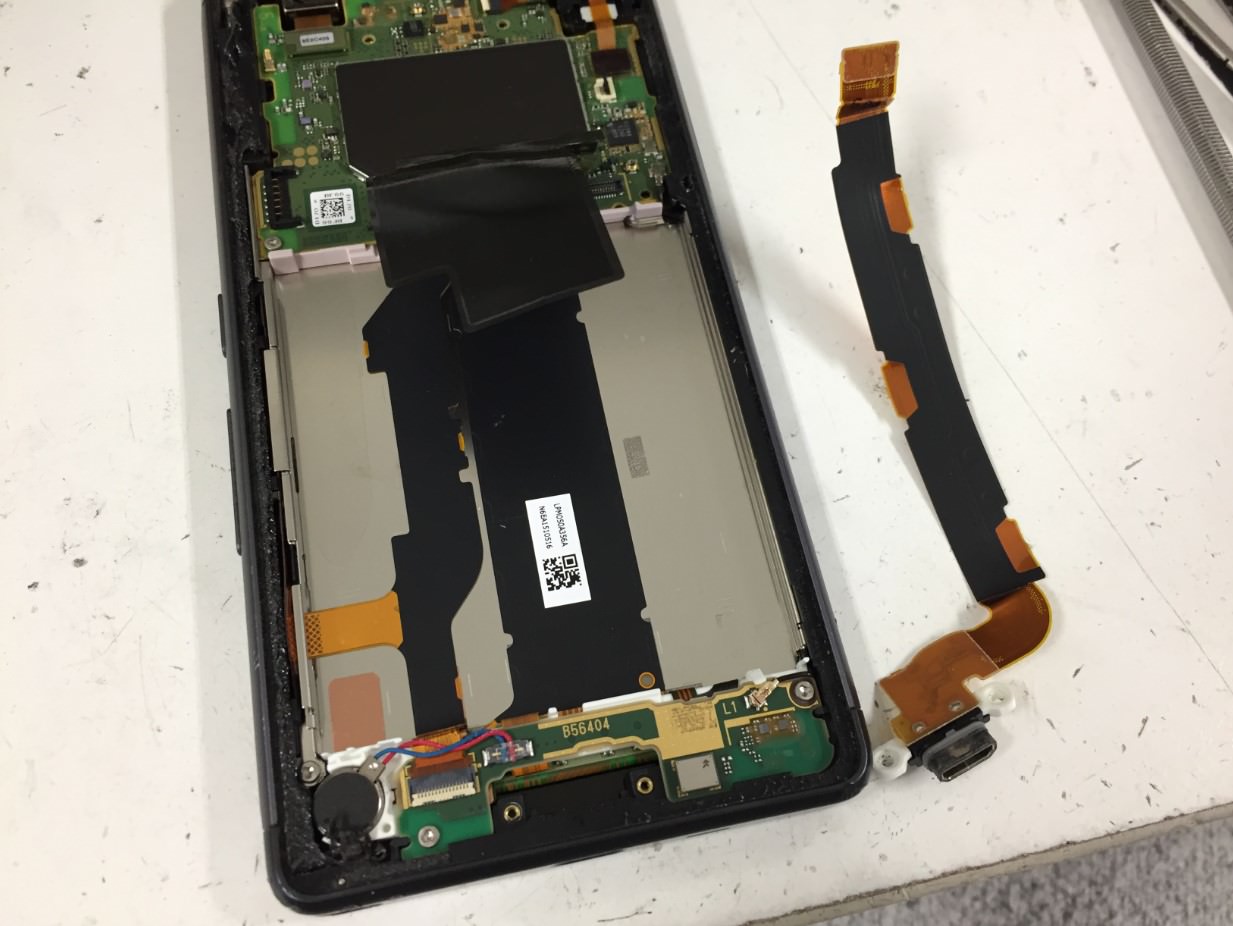 充電口のコネクタを外し、本体から充電口パーツを剥がします。