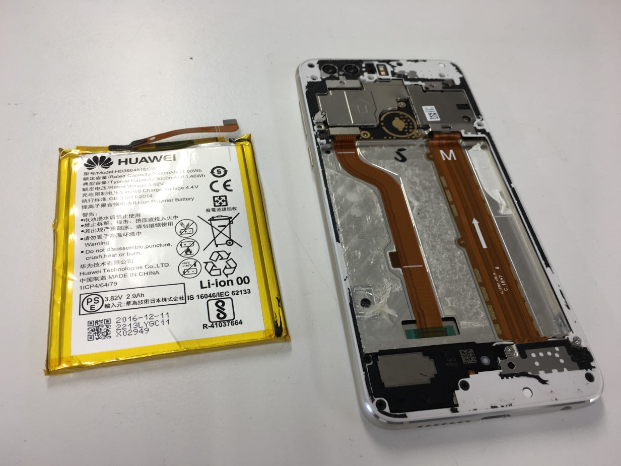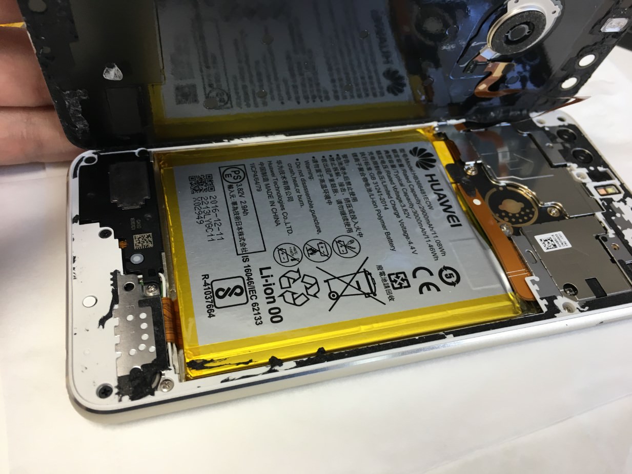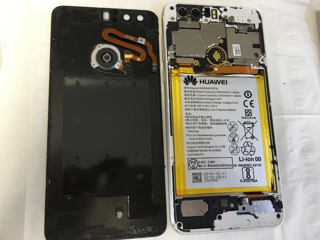 HUAWEI製スマホはバッテリーが非常に強力に本体に接着されています。