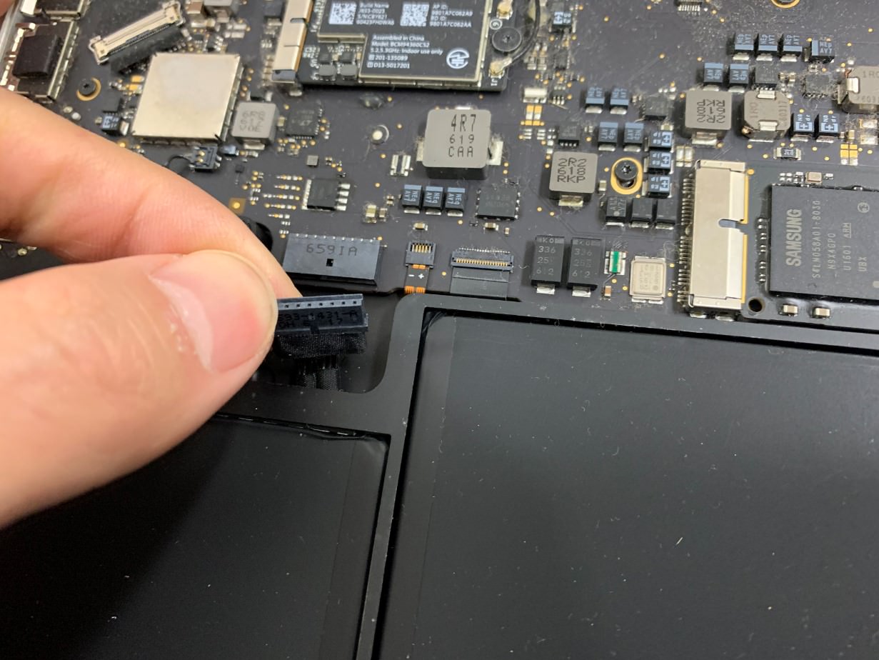 MacBookは型番によって電池パックコネクタの形状が違います。