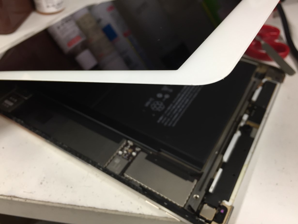 iPadはこのように画面を剥がして分解するので、作業に時間がかかる修理店が多いです。