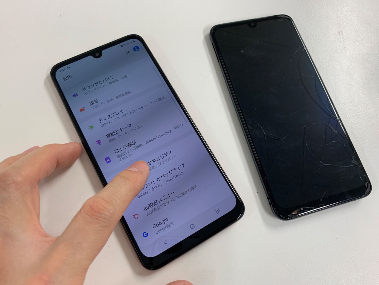 GalaxyA30画面交換!落としてから何も表示されなくなった症状が即日修理で改善!
